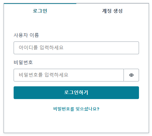 이렇게 한글화가 된 로그인 화면을 볼 수 있다..