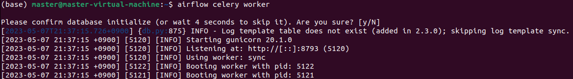 rabbitmq-server airflow celery worker airflow webserver airflow scheduler # 차례로 켜주면 된다