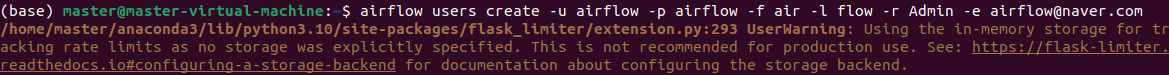 유저 : airflow, 비밀번호 airflow로 유저 생성