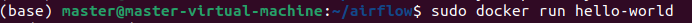 sudo docker run hello-worlddocker run으로 hello-world를 치면, Hello from Docker! 가 나온다.