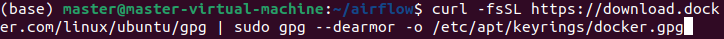 sudo install -m 0755 -d /etc/apt/keyrings curl -fsSL https://download.docker.com/linux/ubuntu/gpg | sudo gpg --dearmor -o /etc/apt/keyrings/docker.gpg sudo chmod a+r /etc/apt/keyrings/docker.gpgDocker's gpg 키 추가하기 위해 위의 순서로 진행한다.
