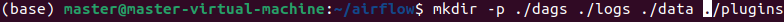 mkdir ./dags ./logs ./data ./plugins echo -e "AIRFLOW_UID=$(id -u)\nAIRFLOW_GID=0" > .envairflow에서 사용할 디렉토리 설정한다. 이 디렉토리는 컨테이너의 볼륨으로 마운트가 되며, DAG를 개발하고 컨테이너에 넣어줄 필요없이, dags 폴더에 DAG 파일을 넣어주기만 하면 된다!